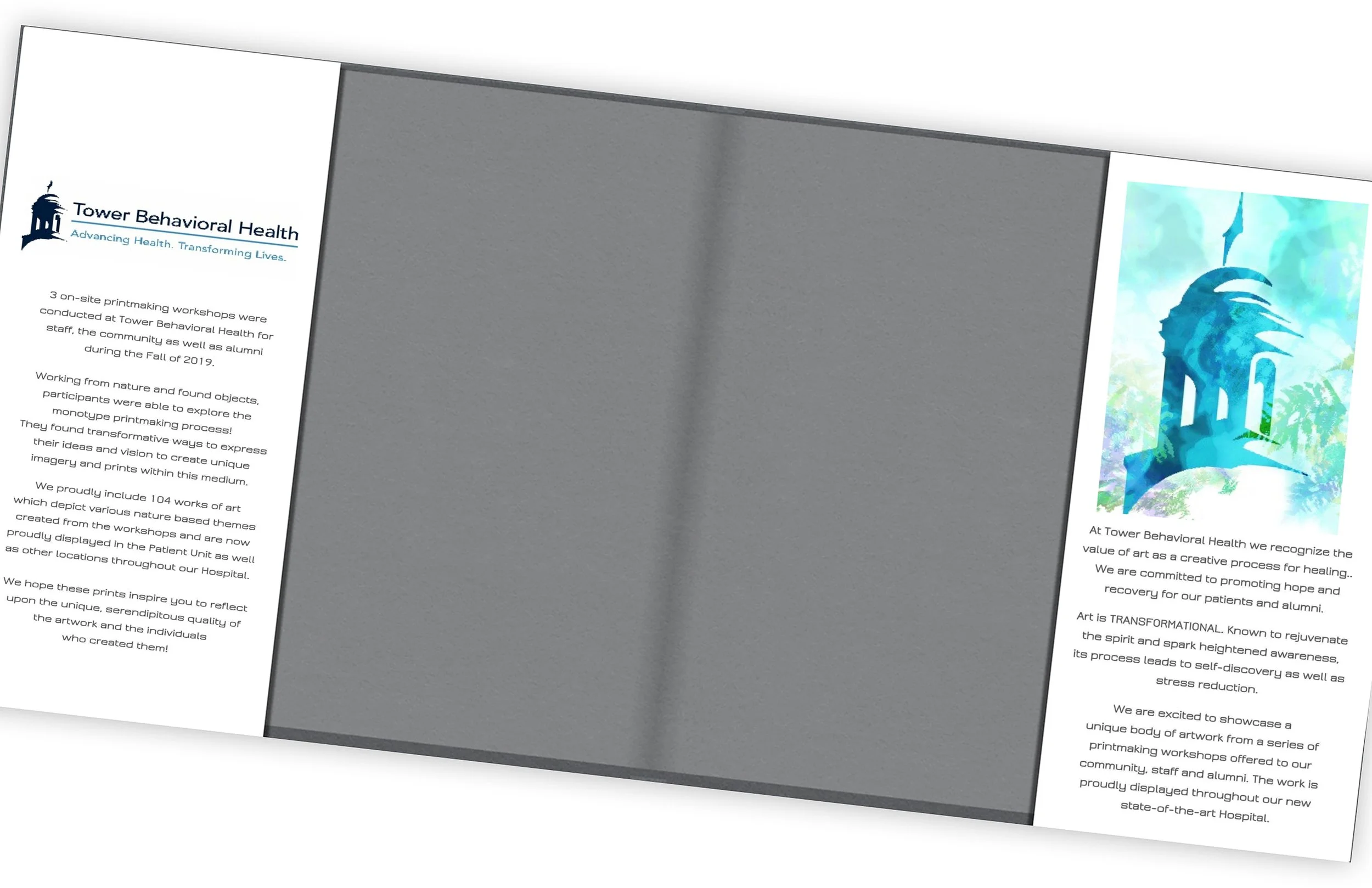 The large Tower Behavioral Health book was designed by SRA and has a branded dustjacket.